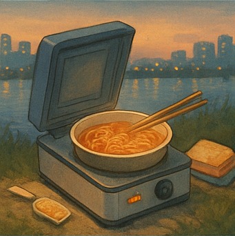 집에서 끓이는 라면도 맛있지만, 뚝섬이나 여의도 한강공원에서 먹는 라면은 무언가 다릅니다. 야외에서 즉석 라면 조리기에 끓여낸 그릇엔 갓 끓인 국물, 쫄깃한 면발, 그리고 서울의 일몰이 함께 담깁니다. 연인과, 가족과, 혹은 혼자여도 그 시간만큼은 모두가 주인공이 되는 순간이죠.