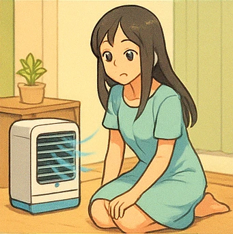 에어컨처럼 공간 전체의 온도를 낮추는 건 아니며, 직접 바람을 맞을 때만 시원함을 느낄 수 있습니다.