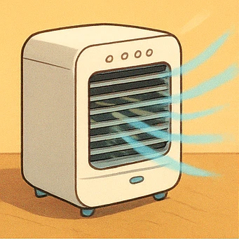 냉풍기는 물이나 얼음을 활용해 바람을 시원하게 만드는 간이형 냉방기기입니다. 물의 증발 과정에서 발생하는 기화열을 이용해 체감 온도를 낮춰주는 원리로 작동하며, 구조상 선풍기와 유사하지만 더 시원한 바람을 제공합니다. 실외기나 배기 호스가 필요 없고, 설치가 간편하다는 점이 큰 장점입니다.