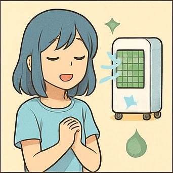 공간을 많이 차지하지 않고, 원룸·아이방·사무실 등 에어컨 설치가 어려운 장소에서 유용합니다.